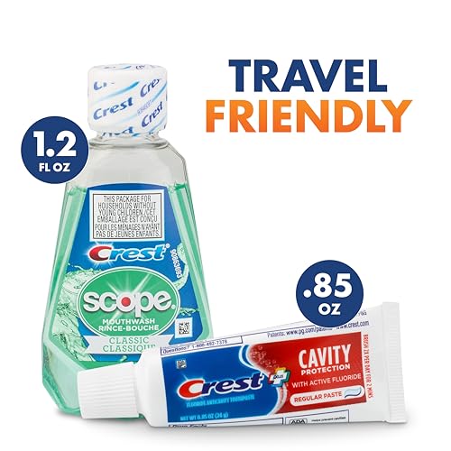 Practicon Adult Dental Care Kit, Travel Size Bundle w/Toothbrush with Cover, Crest Toothpaste, Floss, Tongue Cleaner and Scope Mouthwash, TSA Compliant Oral Care Kit